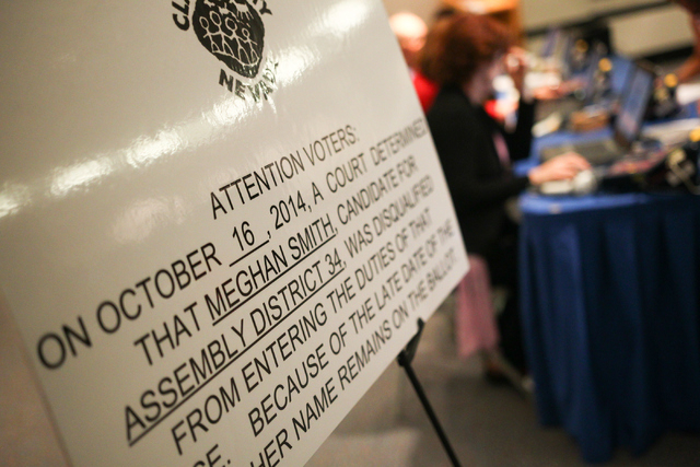 Smith had filed a motion seeking to overturn District Judge Nancy Allf’s order requiring the placement of signs at polling places listing her as an ineligible candidate. The Supreme Court denied the motion, which allows the signs to remain in place.