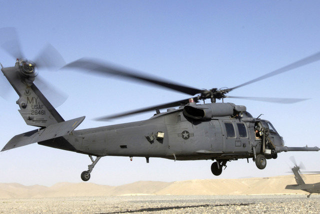 The Air Force said in a statement the day after the helicopter crash that four crew members were treated for non-life threatening injuries after the HH-60G Pave Hawk from Nellis Air Force Base went down during a night training mission on the Nevada Test and Training Range near the monument.