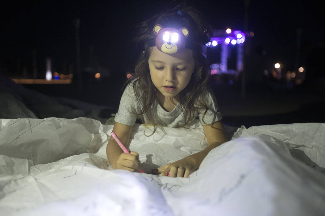 Her daughter Isabella, 7, wrote a letter to her dad, whom she hasn’t seen in a few months, on her lantern.