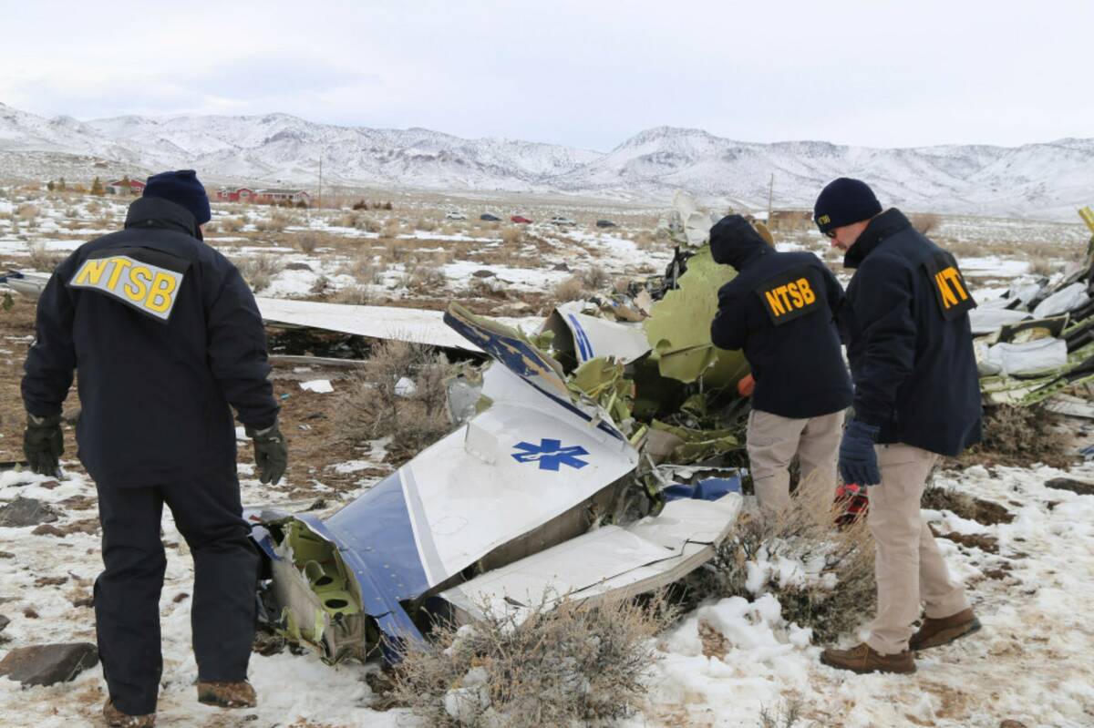 The agency says parts of the plane’s right wing were located as far as three-quarters of a mile from where the single-engine Pilatus PC12 crashed in Stagecoach, a rural community of about 2,500 residents outside of Reno.