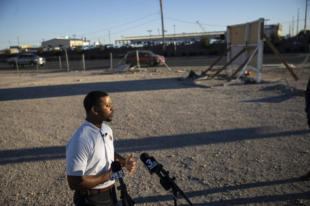 North Las Vegas Mayor John Lee addressed reporters outside City Hall on Sunday.