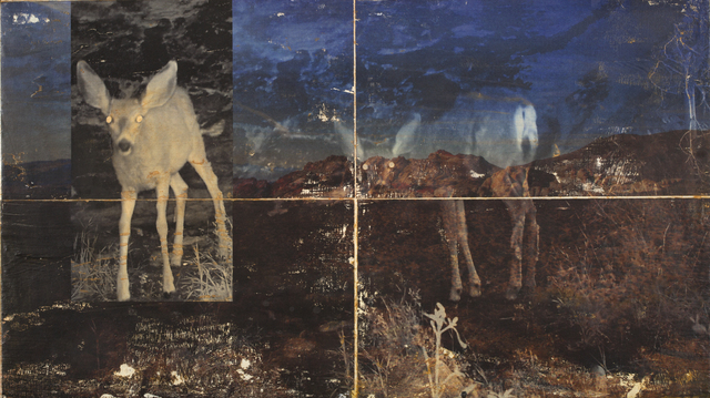 Assistant Department Chairman Sean Russell contributed three pieces to the exhibit that he produced as the Red Rock Canyon National Conservation Area artist in residence. Russell transferred infrared images he took of wildlife such as deer and coyotes rooming the canyon at night onto images of the landscape during the day.