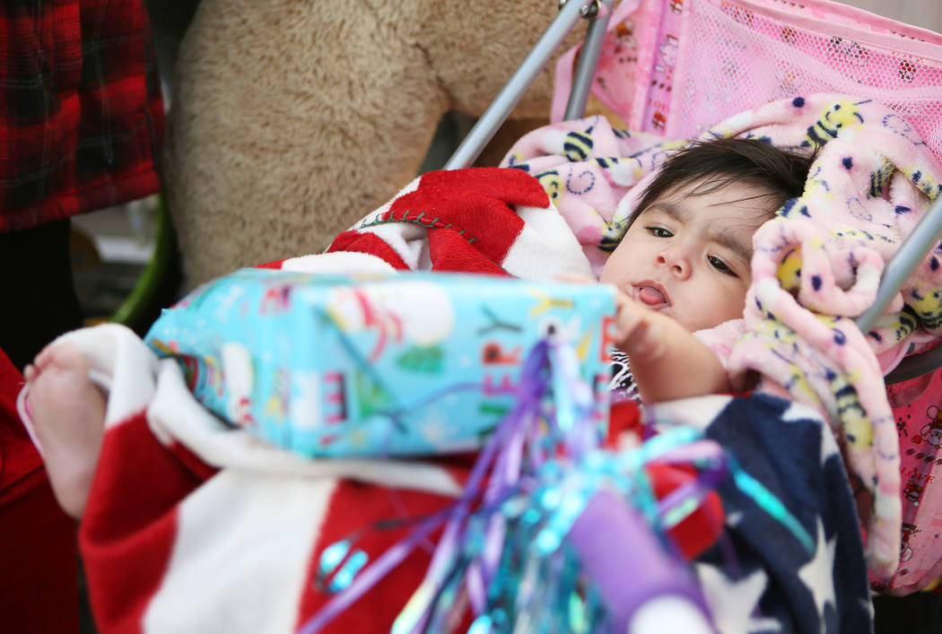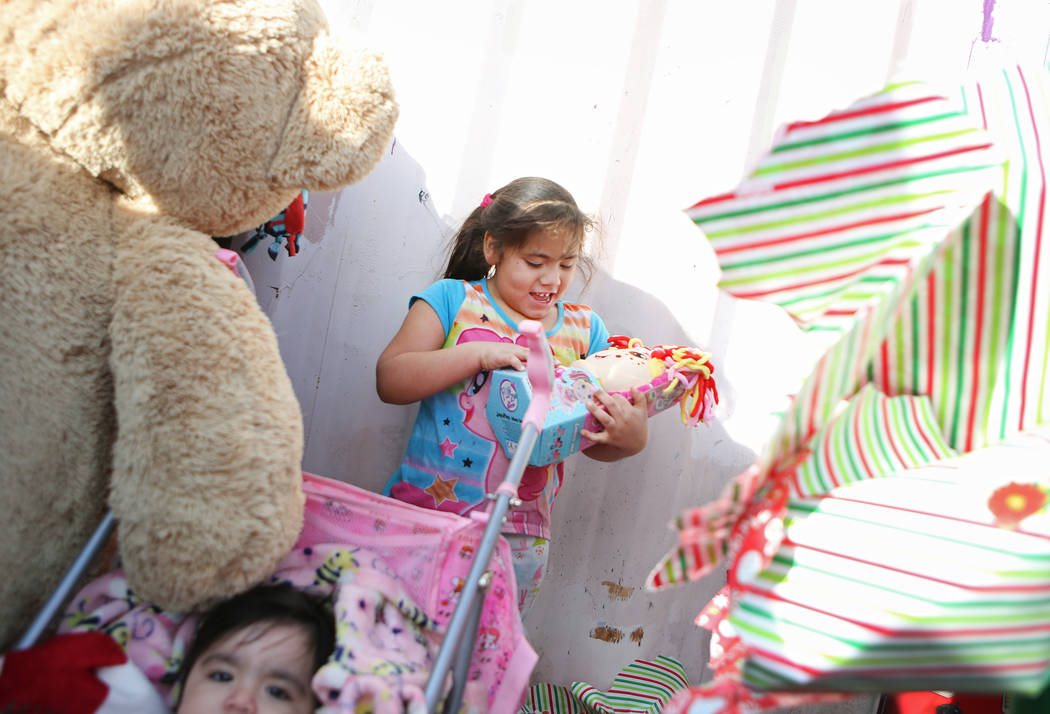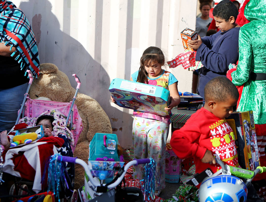 As the Hernandez children tore off the wrapping paper on their gifts, more of the neighborhood kids and their parents had trickled out of their apartments.