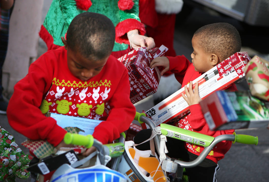 Santa Claus shuffled back to the firetruck, pulling out three more red velvet bags filled with gifts. This time for the six Hernandez children who are being raised by their grandmother.
