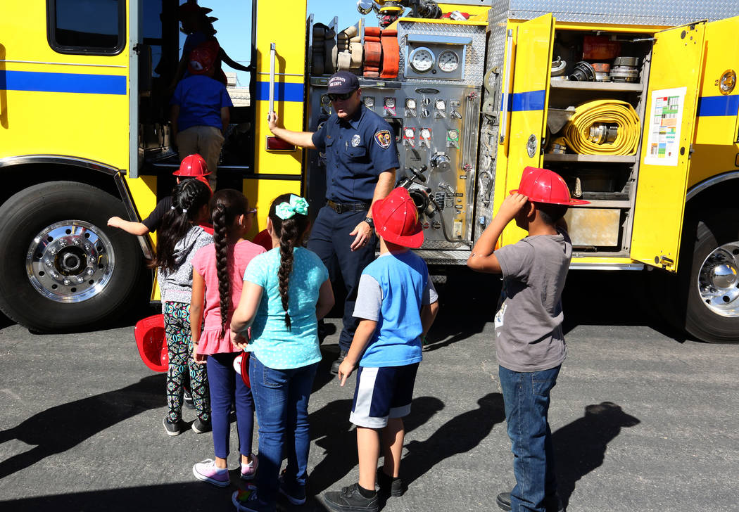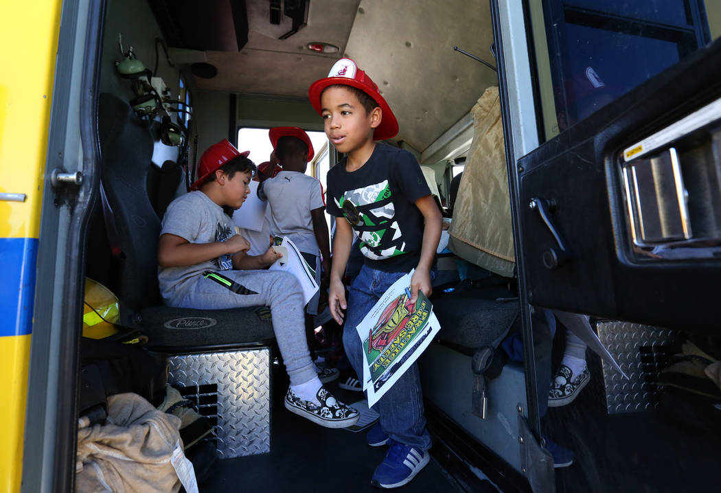 Second grade students, incuding Luis Melendez, check out a fire truck during a fire prevention and safety event at Ann T Lynch Elementary School on Thursday, Sept. 20, 2018, in Las Vegas. (Bizuayehu Tesfaye/Las Vegas Review-Journal) @bizutesfaye