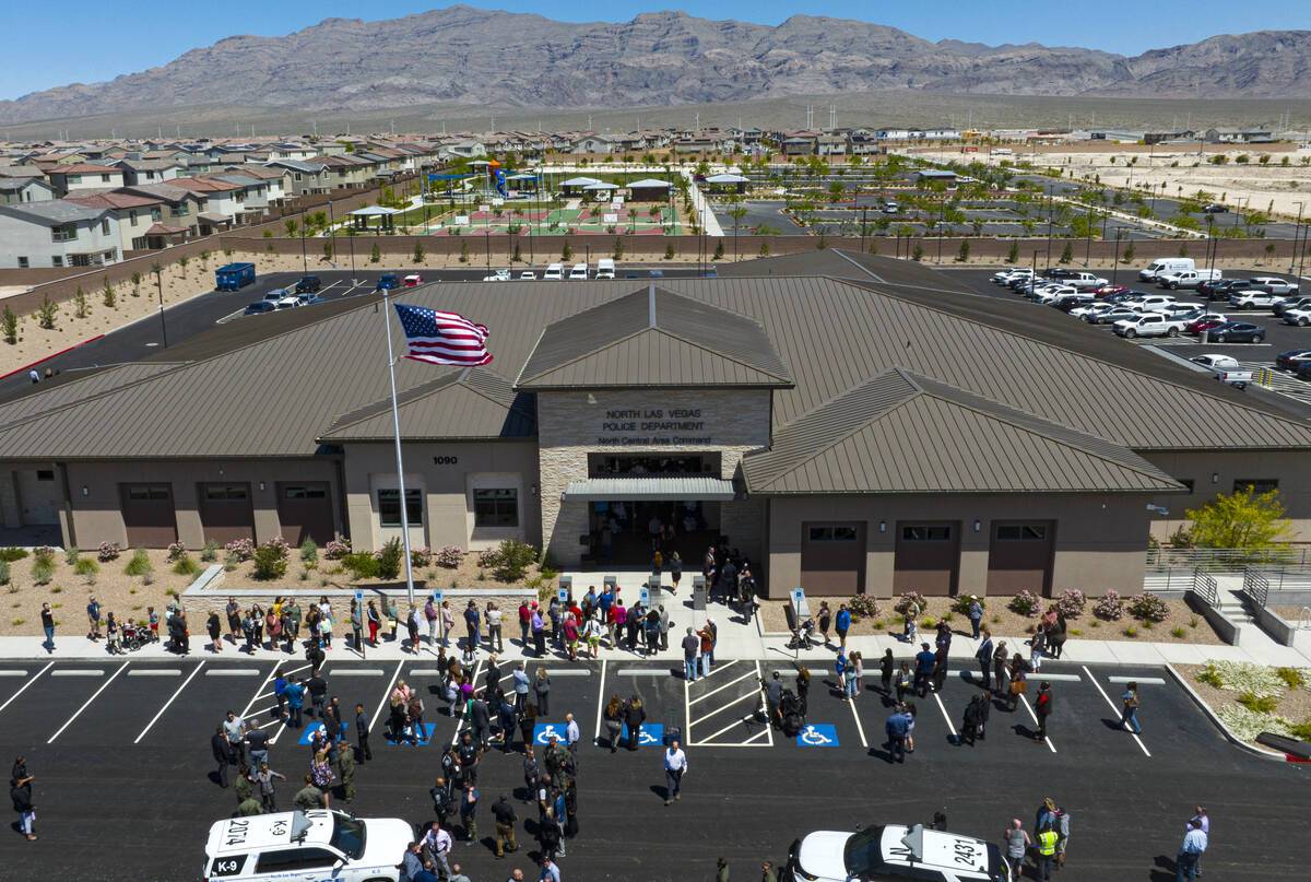 People attend the official opening ceremony and ribbon cutting for the third North Las Vegas police station, on Wednesday, May 8, 2024, in North Las Vegas. (Bizuayehu Tesfaye/Las Vegas Review-Journal) @bizutesfaye