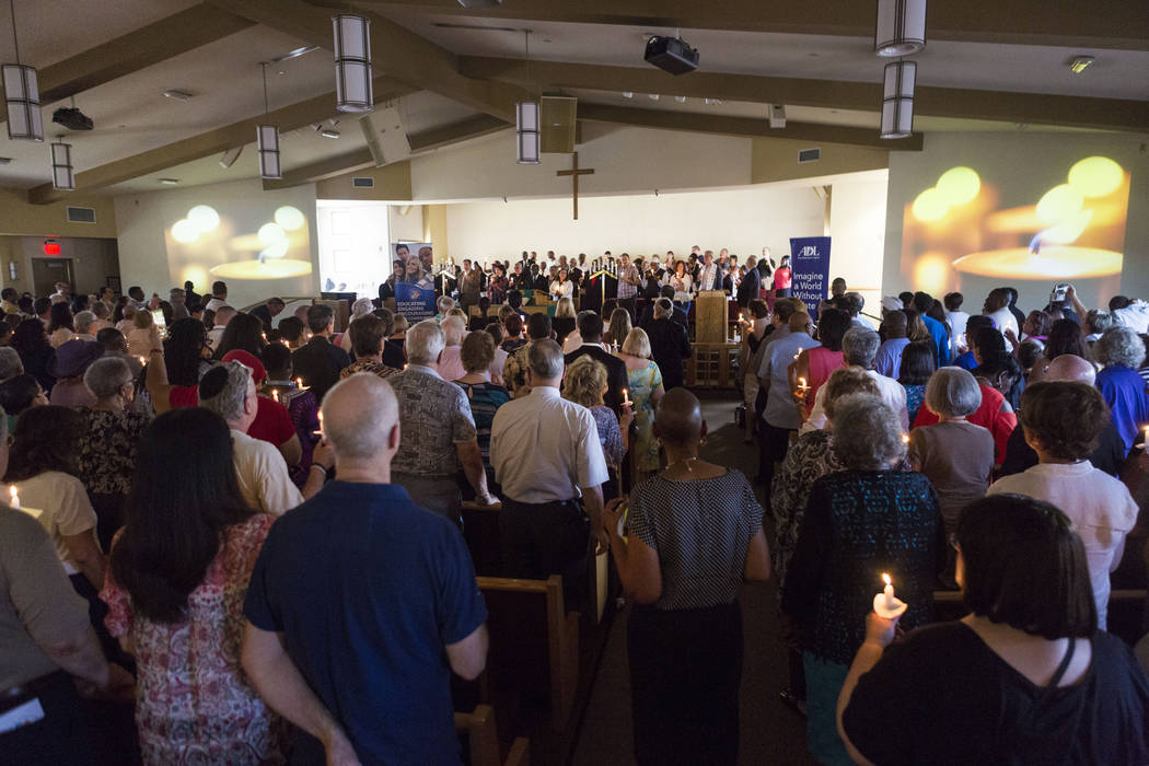 In response, Las Vegans stood shoulder-to-shoulder in pews denouncing anti-Semitism, racism and bigotry.