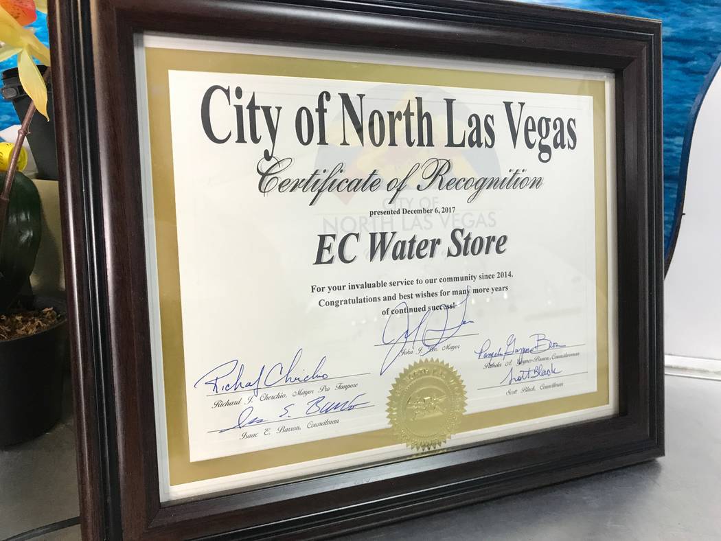 EC Water Store was named business of the month, a new award in which council members take turns selecting a business to recognize, during a North Las Vegas City Council meeting in December. Meunier was selected by Councilman Scott Black, who met him in 2017 while stopping by several businesses in Ward 4. Meunier recalls Black staying and talking with him for about an hour.