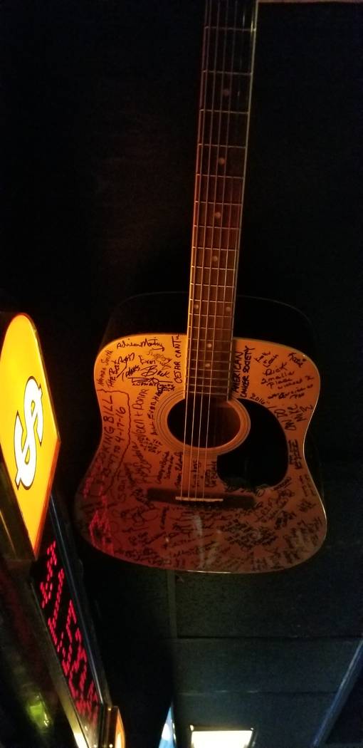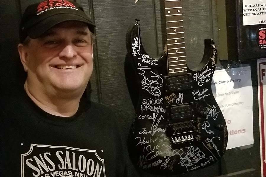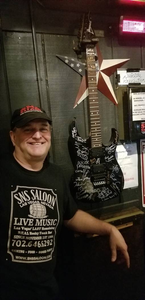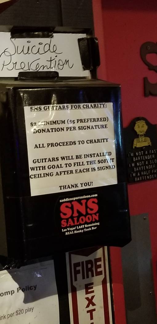 Mounted on a wall at Saddle ‘N’ Spurs, or SNS, Saloon, a north valley honky-tonk where a cutout of John Wayne keeps watch over the bar, the guitar is more than a guitar: It’s a thing of remembrance, awareness, charity and loss.