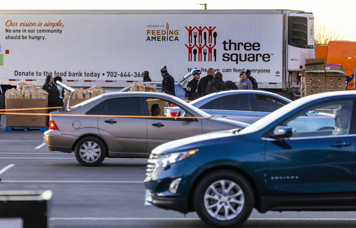In Las Vegas, the need for food was clearly on display Tuesday night, with a huge line of cars snaking around the stadium in a scene that was reminiscent of the long lines for food during the height of the COVID-19 pandemic.