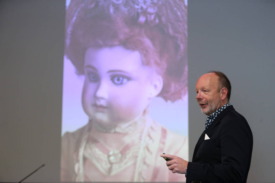 Stuart Holbrook, president and head auctioneer of a renowned doll auction house, gave hobbyists a sneak peek inside the word of high-priced doll collectibles during a recent talk at Windmill Library.