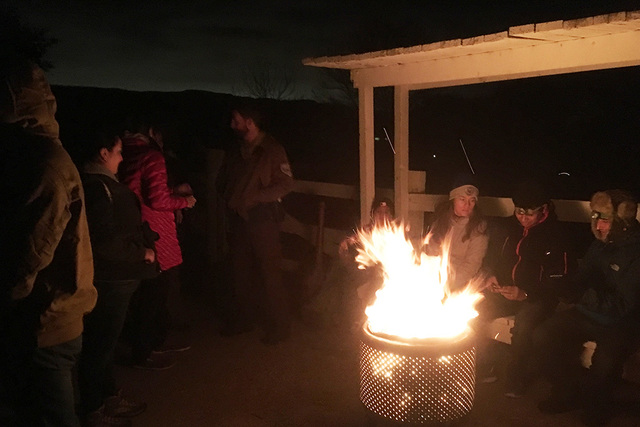 The minimal presence of light — about half the hikers carried flashlights — forced participants to rely more on the other four senses. In the dark, the coyotes sounded closer and more menacing, while the smells of rotting leaves, standing water and small warming fires at the beginning, middle and end of the hike were more discernible.