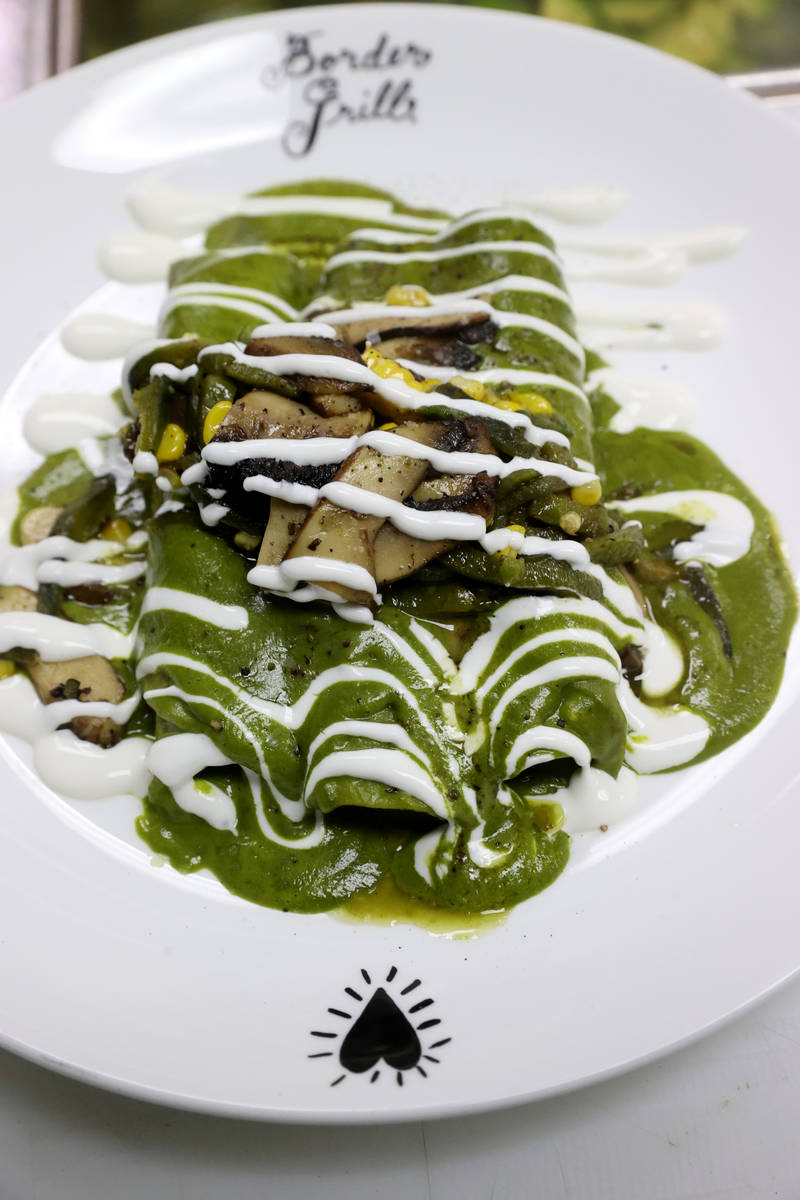 Chicken Poblano Enchiladas at Border Grill at Mandalay Bay on the Strip in Las Vegas upon reopening Wednesday, July 1, 2020. (K.M. Cannon/Las Vegas Review-Journal) @KMCannonPhoto