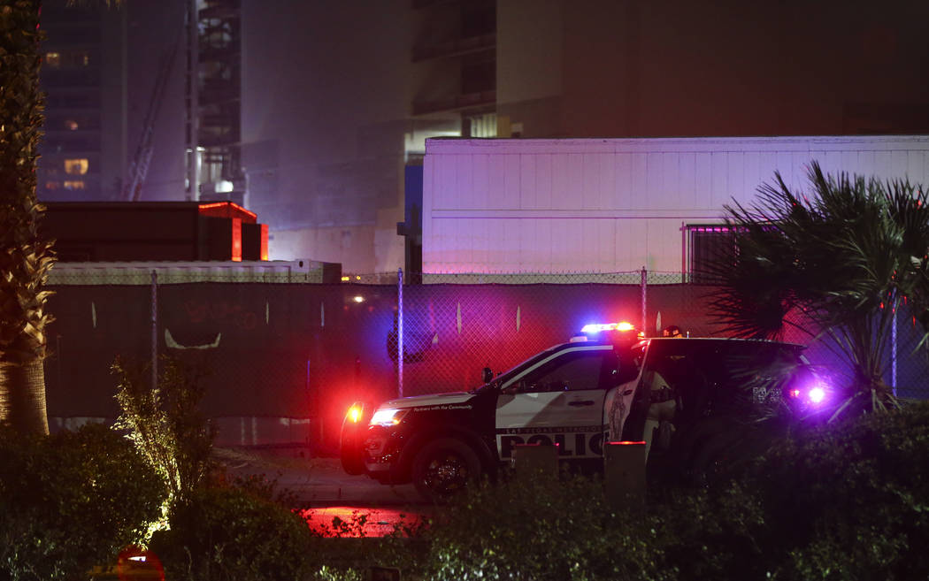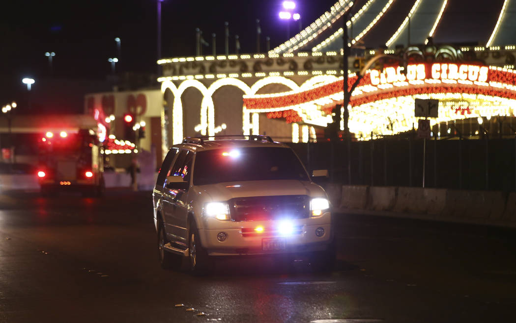 Las Vegas police take a suspect into custody near the scene of a fire at The Drew, formerly the Fontainebleau, in Las Vegas on Thursday, March 1, 2018. Chase Stevens Las Vegas Review-Journal @csstevensphoto