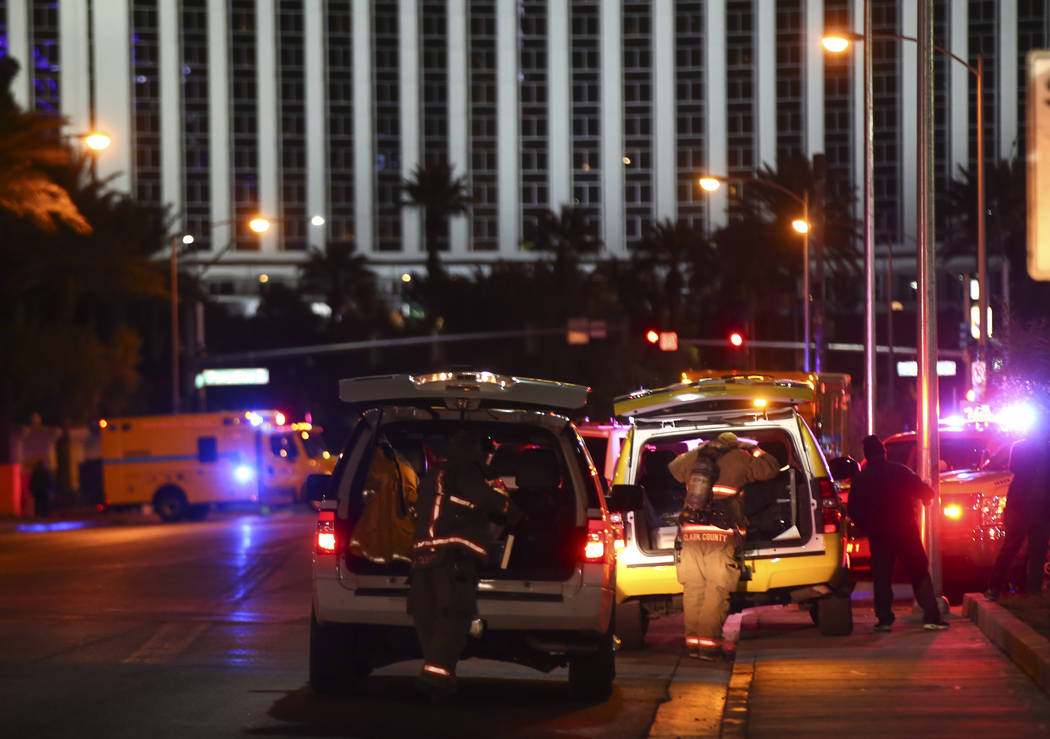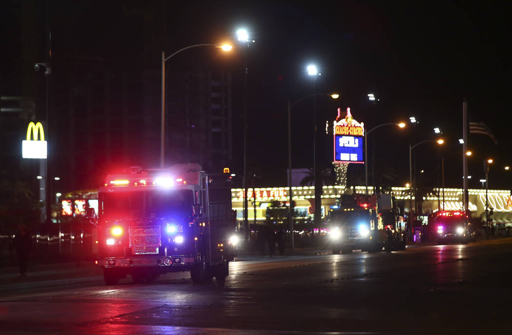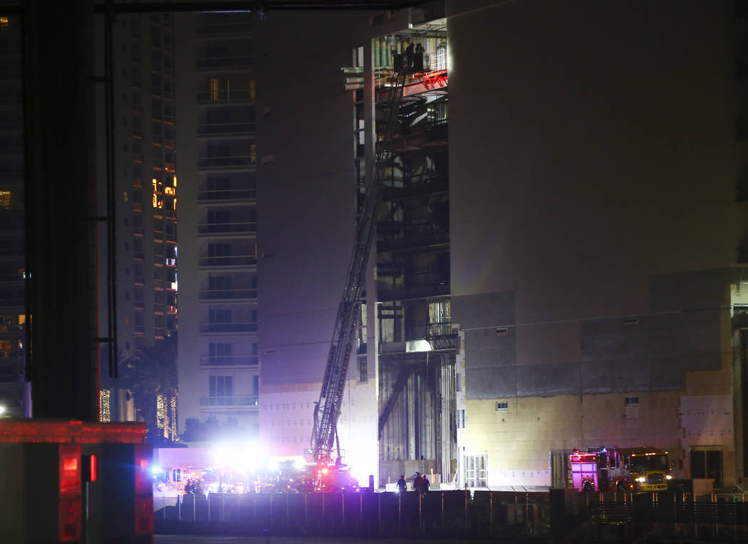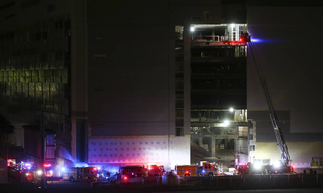 Las Vegas and Clark County firefighters respond to the scene of a fire at The Drew, formerly the Fontainebleau, in Las Vegas on Thursday, March 1, 2018. Chase Stevens Las Vegas Review-Journal @csstevensphoto