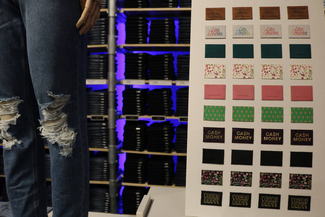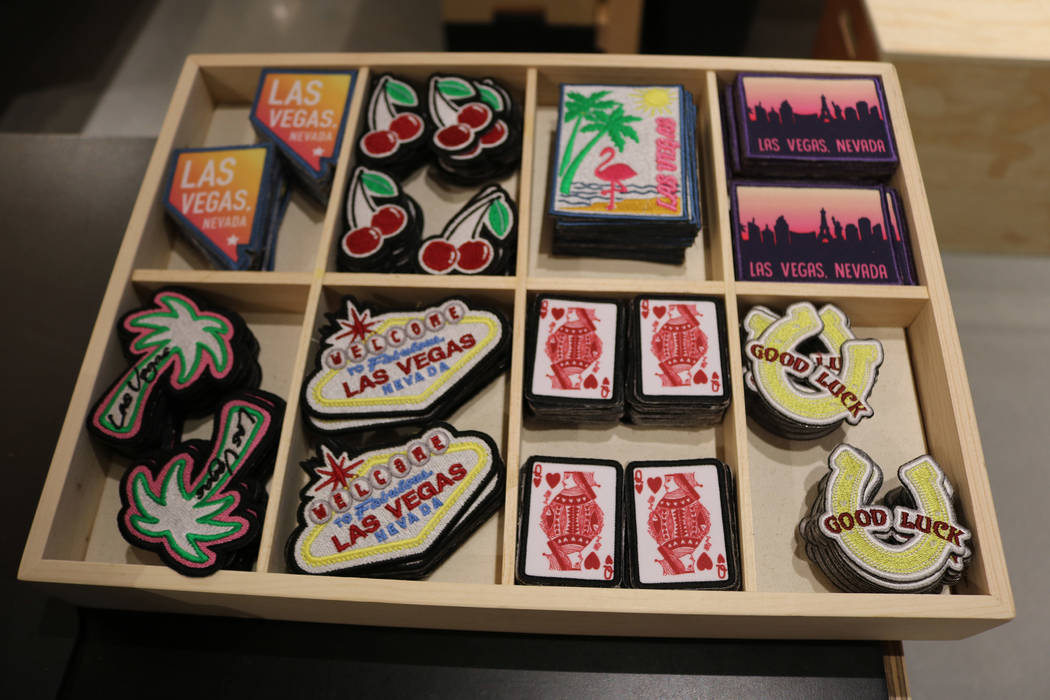 Upstairs, customers can add personalized features to jeans. Iron-on patches come in Las Vegas-centric designs like the Queen of Hearts, a pair of cherries and the “Welcome to Fabulous Las Vegas” sign. The store offers leathery patches— technically called jacrons— in dozens of colors and designs to replace the brown one that comes stitched on the back of the waistband.