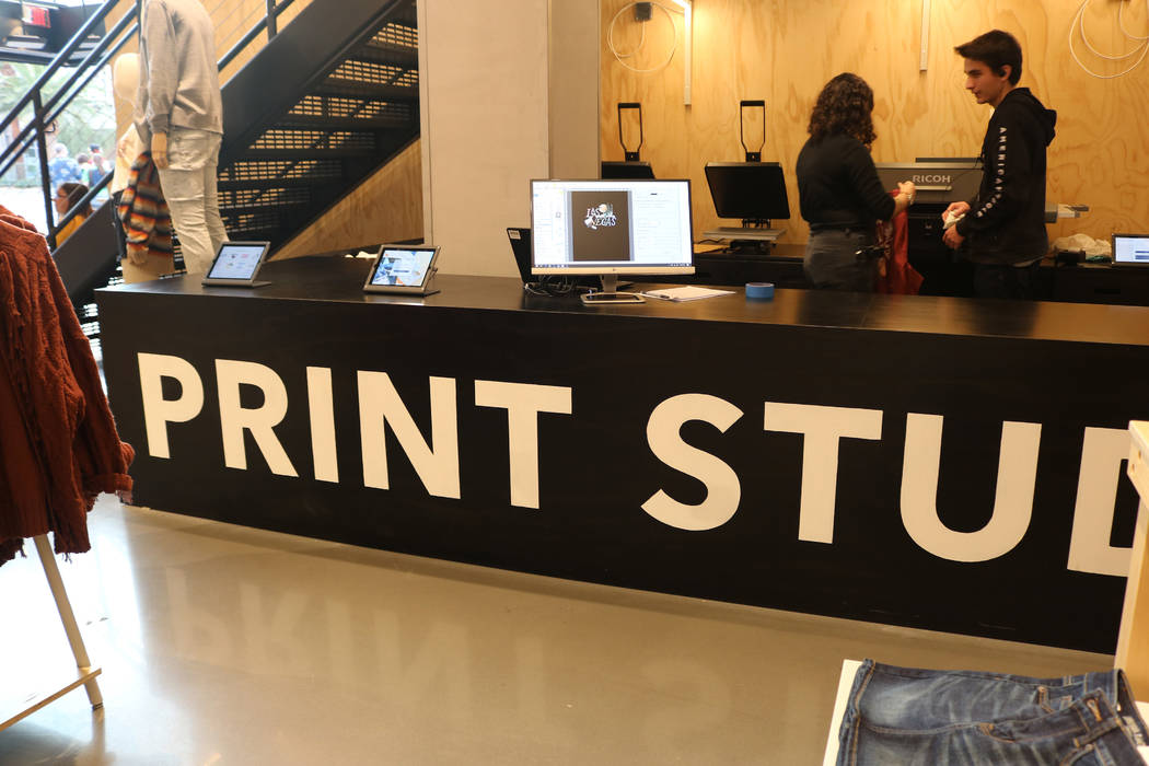 Screen-printed customization begins with selecting an item from the t-shirt wall, or any top or outerwear containing a minimum of 60 percent cotton.