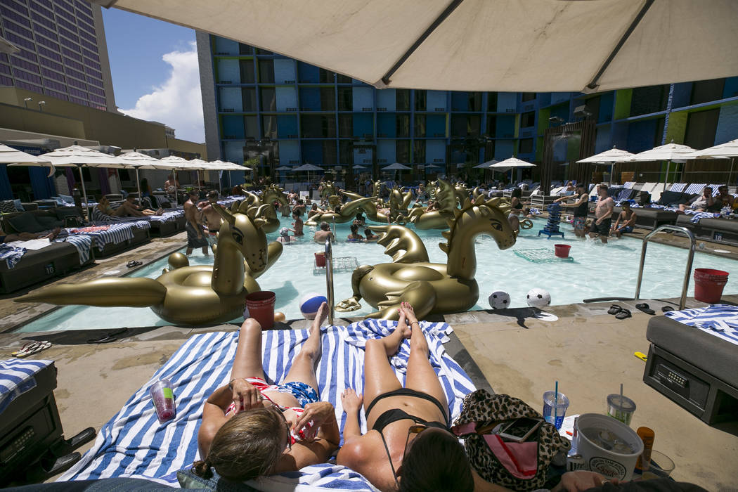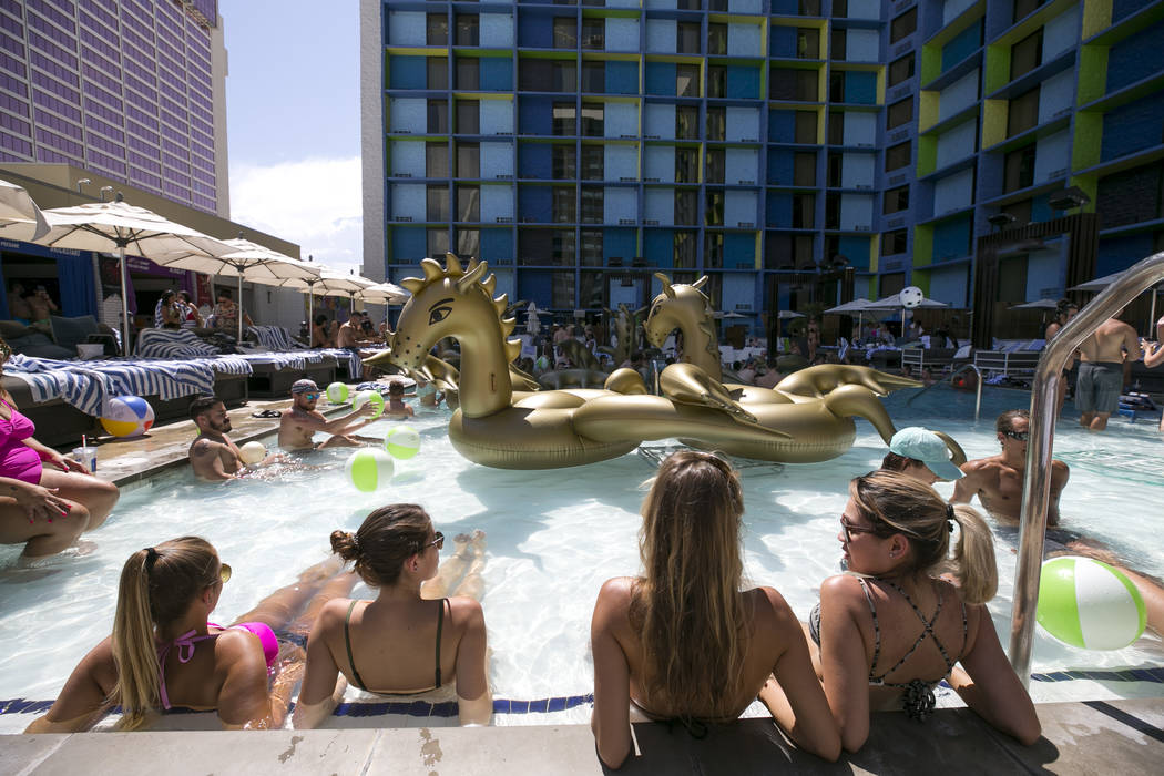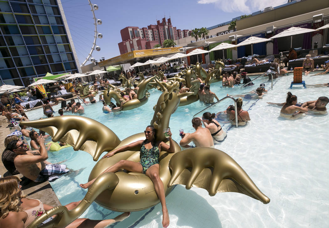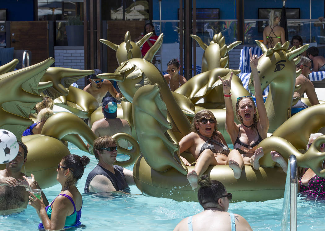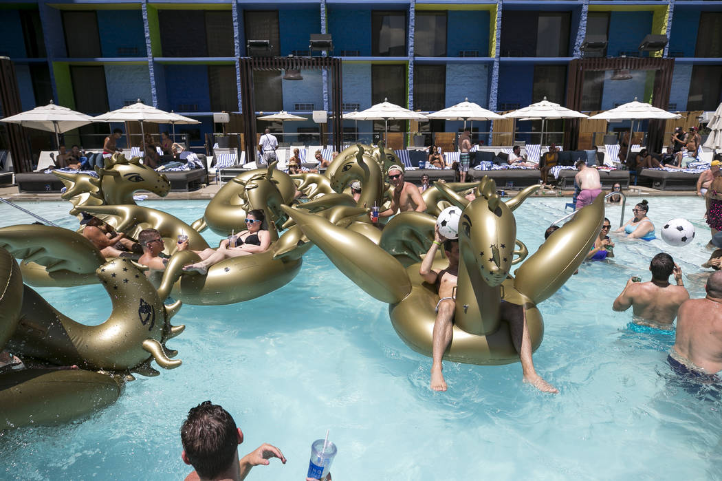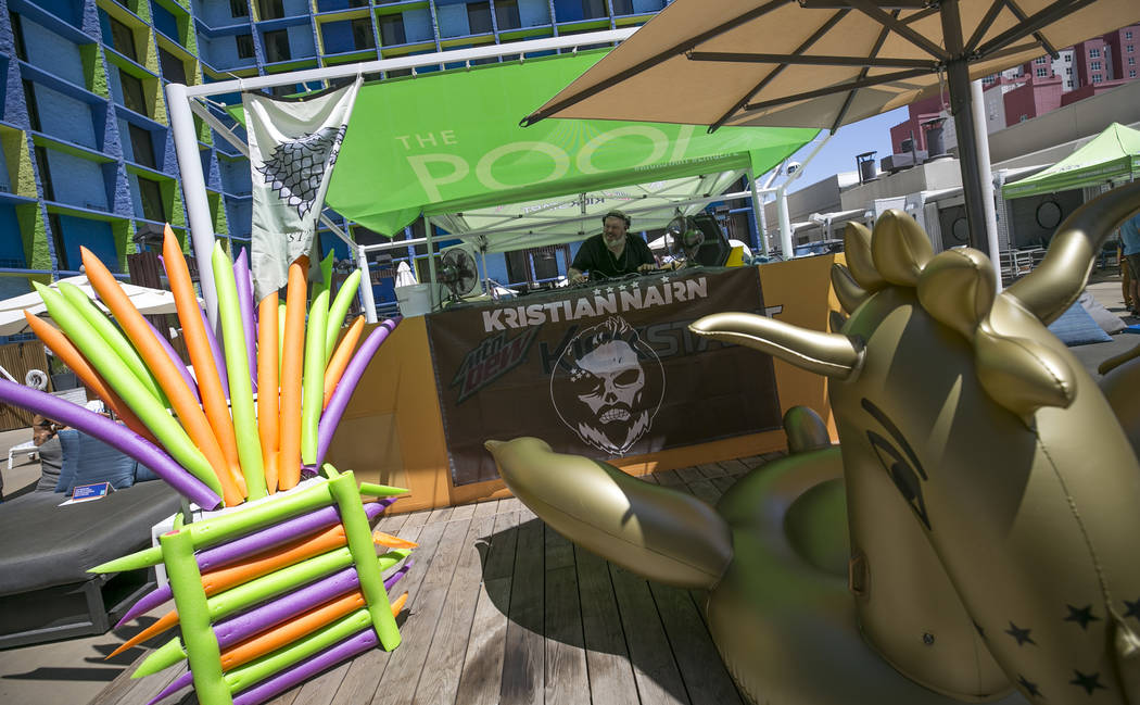 There were some reminders of the series for attendees who may have leaned more toward just being fans of the show. A throne made of pool noodles in front of the DJ booth, huge inflatable golden dragons that floated in the pool and “Game of Thrones” banners were pinned up around the pool deck. Although the show began its seventh season this month, Nairn’s character died in the sixth season, which aired in 2016.