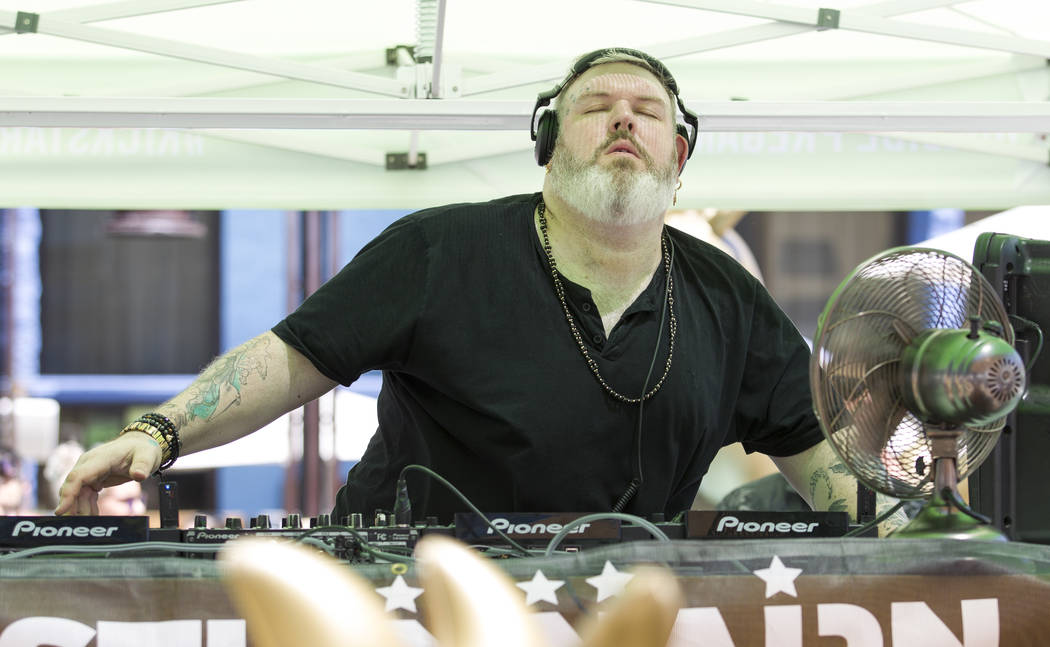 Several people, including at least one pool employee, stopped and took pictures in front of the DJ booth. Nairn would occasionally look up and flash a smile, but most of the time he kept his eyes closed and rocked his head to the beat