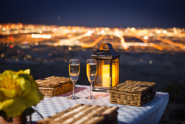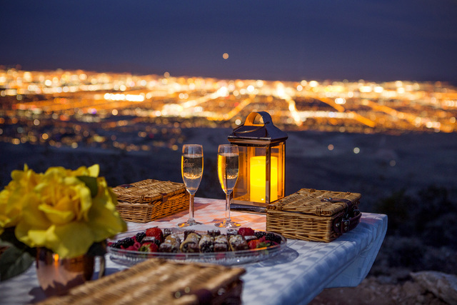In just 15 minutes, the picnic tour’s guests are transported from the bustling Las Vegas Boulevard to a remote, dirt- and shrub-filled flat area of land nestled atop a hill in the Spring Mountain Range.