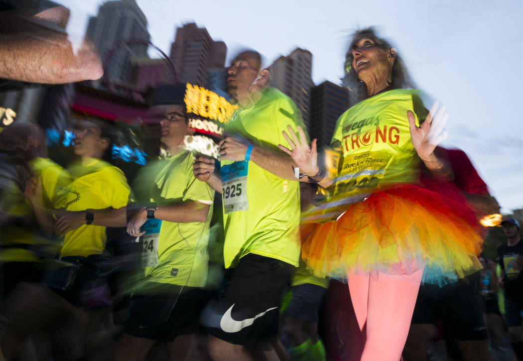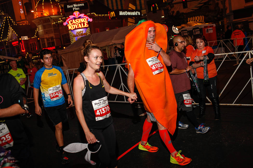 Half marathon participants Timothy O’Shea Jr. of Nyack, N.Y.., and Mary Hannapel of Otsego, Mich. head out from the start of the Rock ‘n’ Roll Marathon in Las Vegas on Sunday, Nov. 12, 2017. Chase Stevens Las Vegas Review-Journal @csstevensphoto