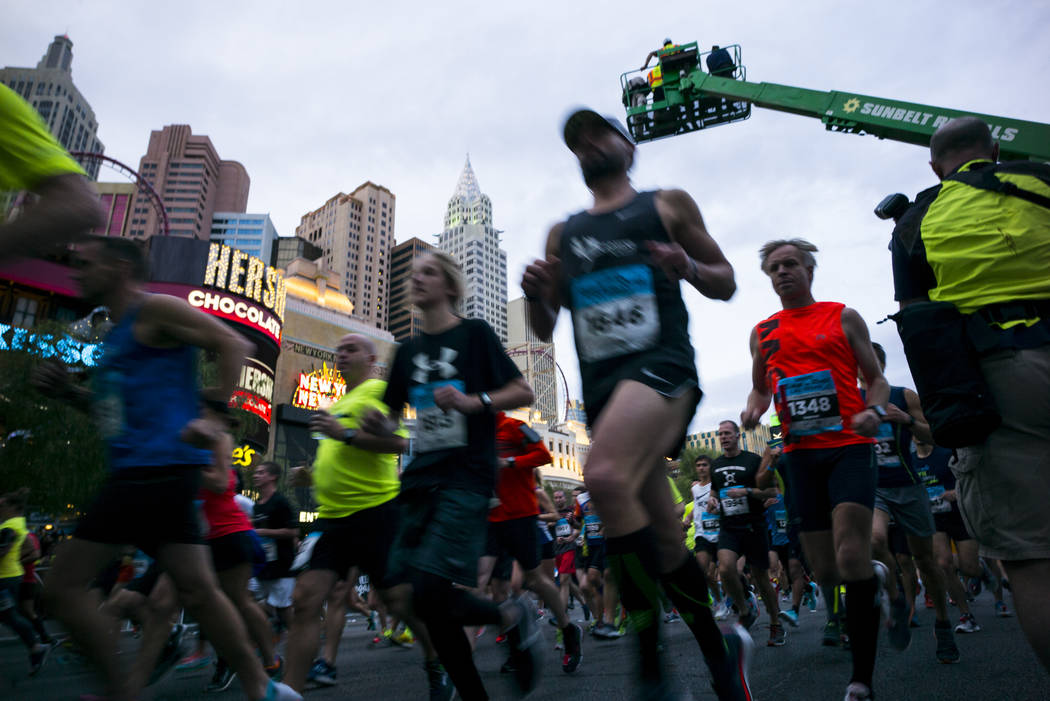 Adam Sturdy of London heads out from the start line outside of the New York-New York at the beginning of the Rock ‘n’ Roll Marathon in Las Vegas on Sunday, Nov. 12, 2017. Chase Stevens Las Vegas Review-Journal @csstevensphoto