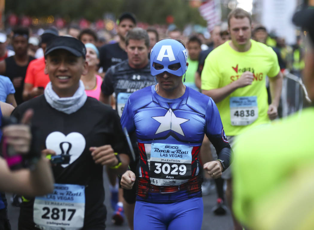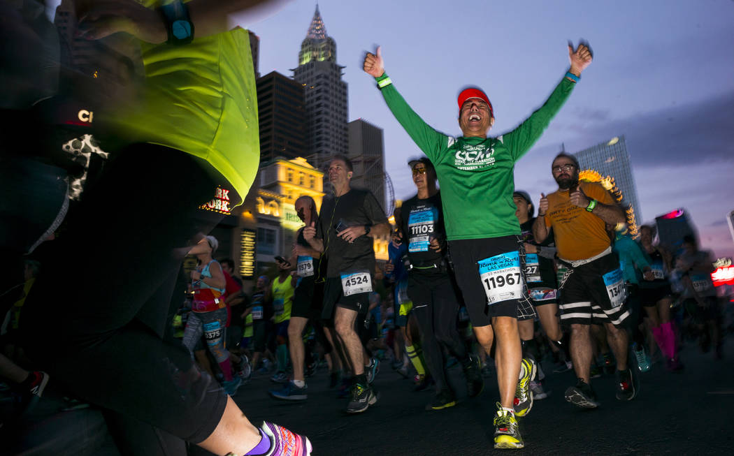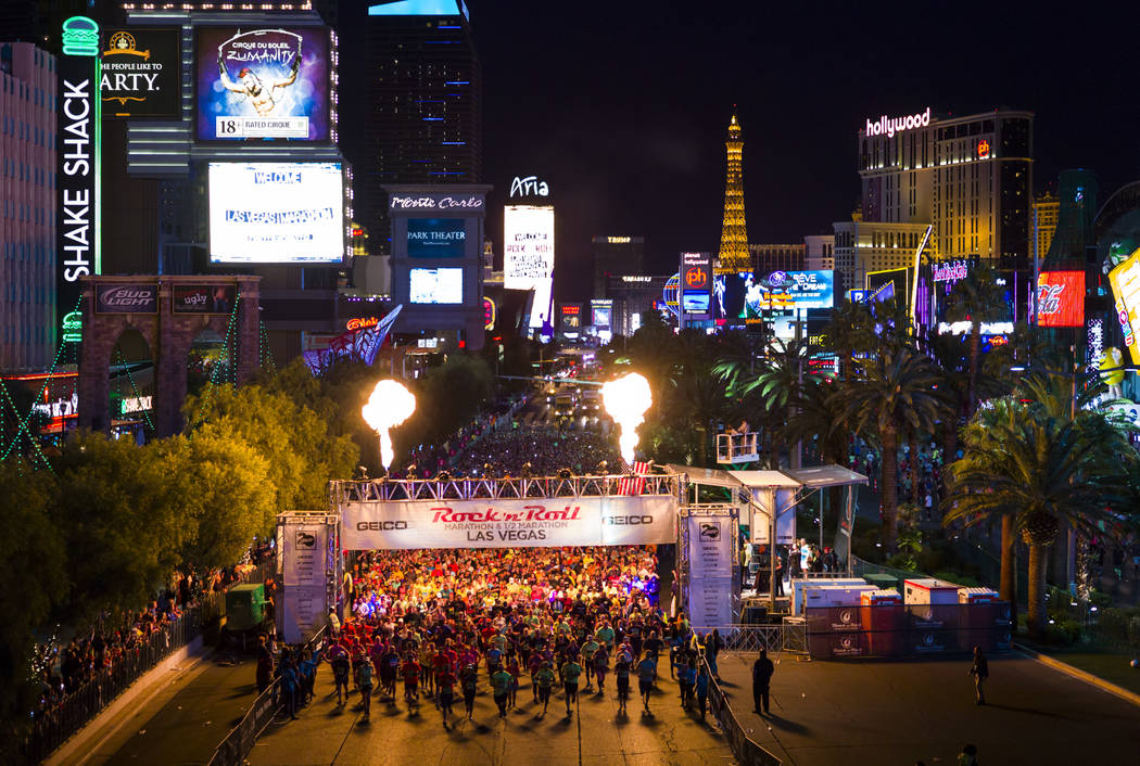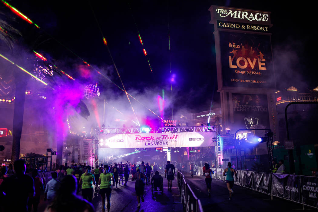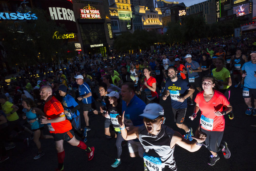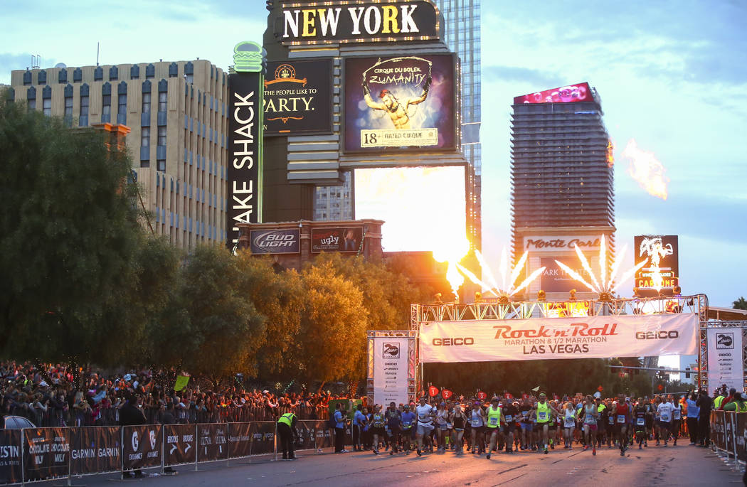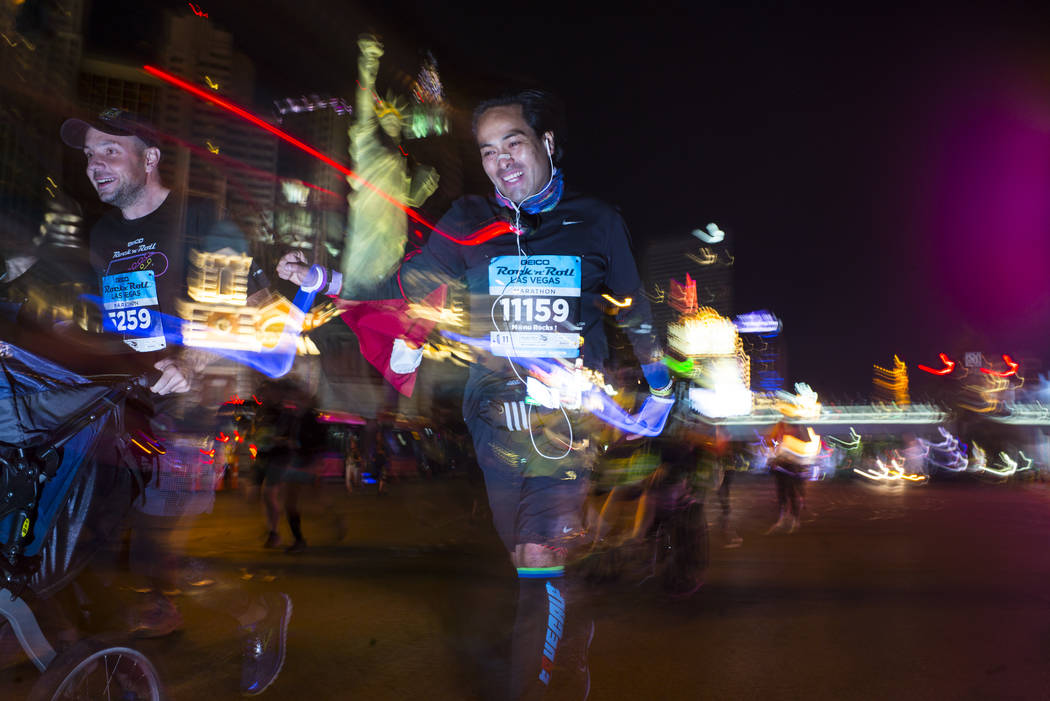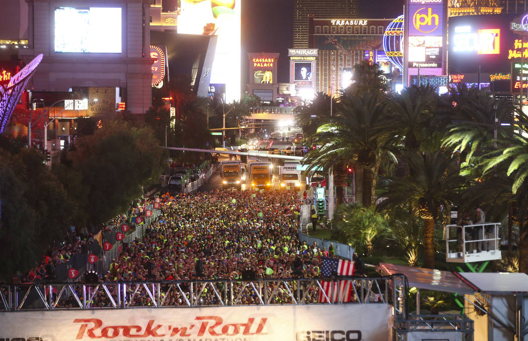 More than 40,000 runners soaked up the Las Vegas scene during Sunday’s Rock ‘n’ Roll Marathon, which started at sunset.