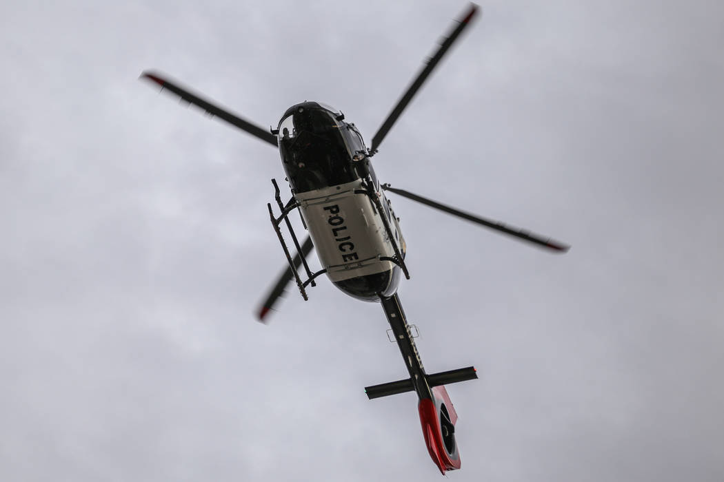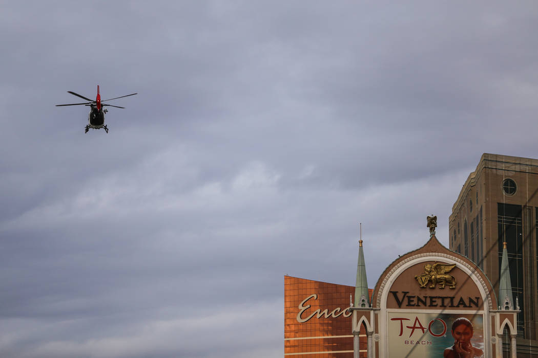 A police chopper flies above the Rock ‘n’ Roll Las Vegas Marathon course along the Strip near The Mirage in Las Vegas, Sunday, Nov. 12, 2017. Joel Angel Juarez Las Vegas Review-Journal @jajuarezphoto