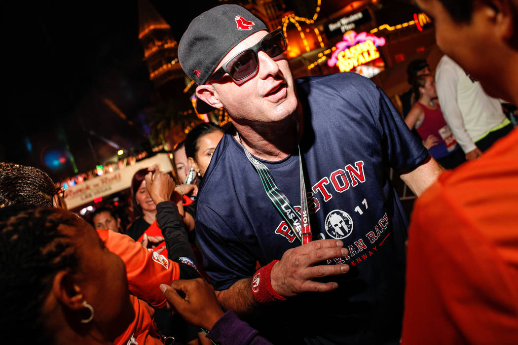 John Henley of Boston, 42, crosses the finish line at the 10K run of the Rock ‘n’ Roll Las Vegas Marathon along the Strip near The Mirage in Las Vegas, Sunday, Nov. 12, 2017. Joel Angel Juarez Las Vegas Review-Journal @jajuarezphoto