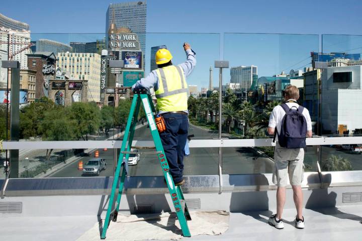 The pedestrian bridge linking the New York-New York and MGM Grand reopened Monday, just one day before the Golden Knights play their first preseason home game at the nearby T-Mobile Arena.