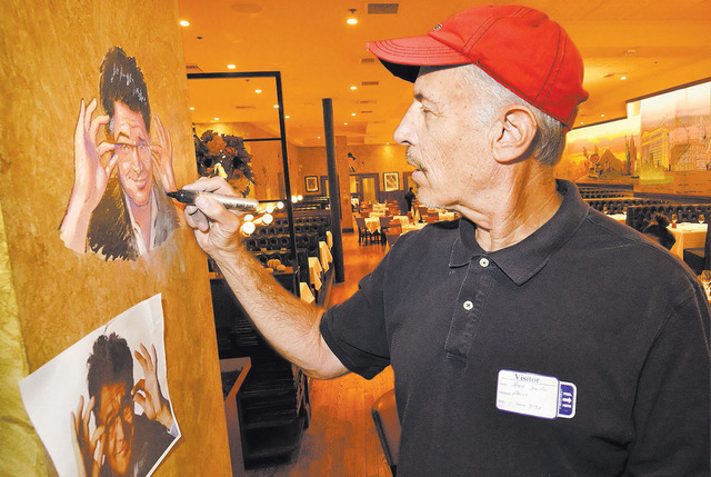 Steve Spector has created thousands of portraits, many of which overlook diners at Palm Restaurant.