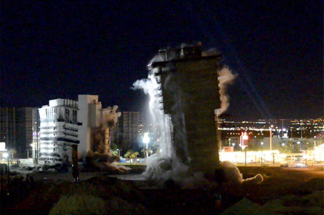Hundreds of Riviera fans, insomniacs or people who just enjoy the sight and sound of a big building being brought down gathered around the Riviera Tuesday morning to give it a send-off into history.