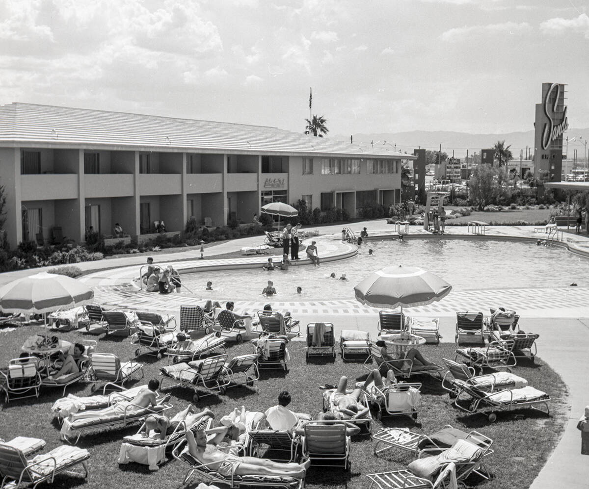 The swimming pool at the Sands Hotel on July 21, 1956. (Las Vegas News Bureau)