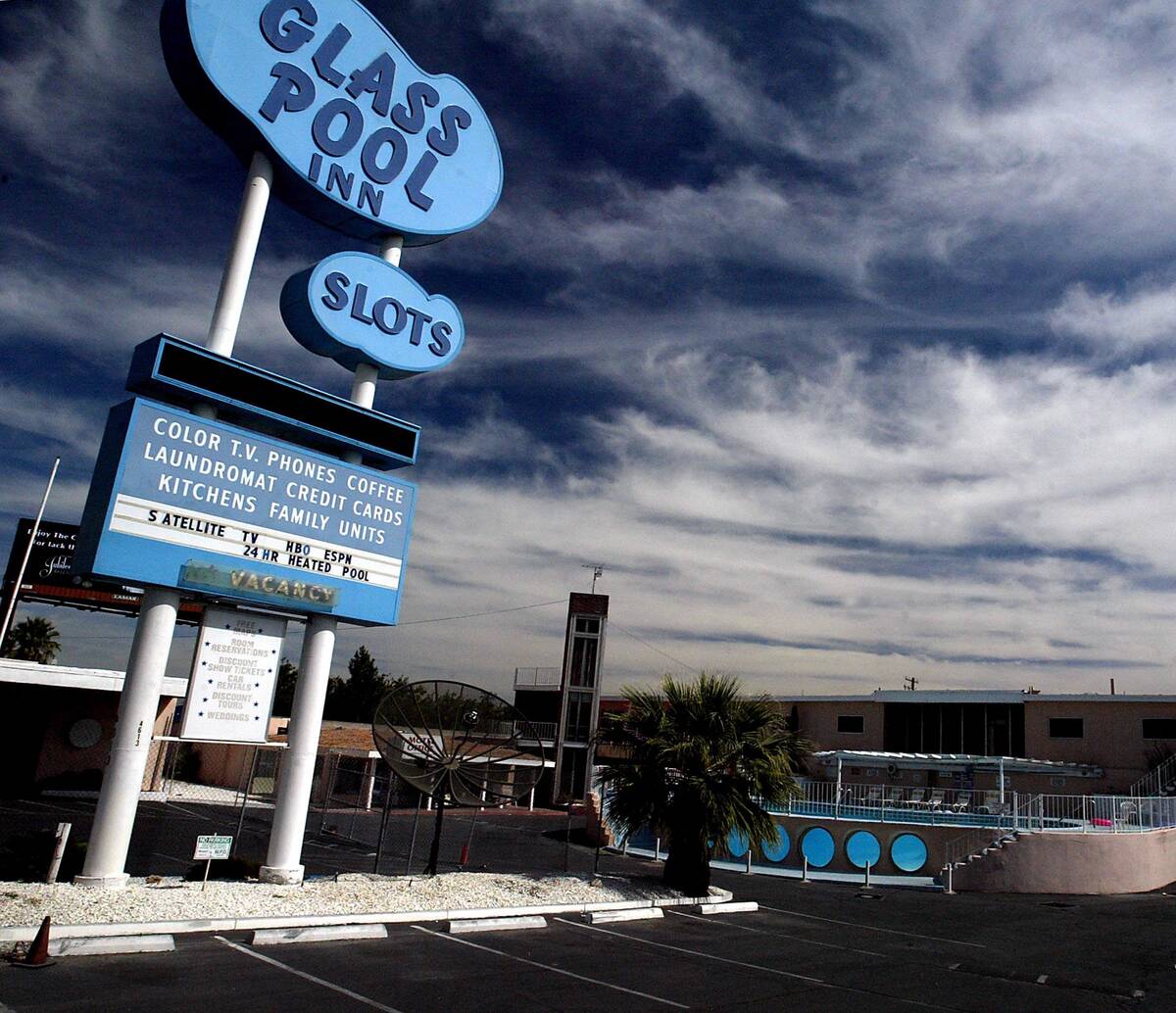 The Glass Pool Inn is shown in this Oct. 6, 2003, photo on Las Vegas Boulevard South. The site was a popular place for photo shoots and appeared in TV programs and movies before it closed in 2003. (Las Vegas Review-Journal)