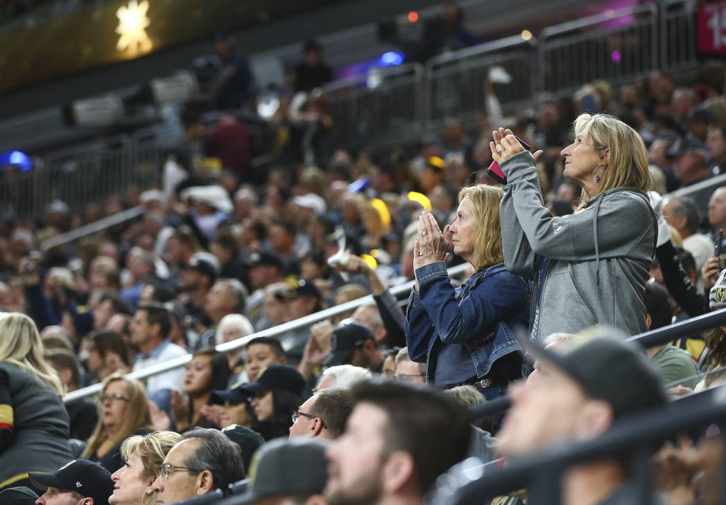 Fans cheer for first responders and victims of the mass shooting in Las Vegas before the start of an NHL hockey game at T-Mobile Arena between Golden Knights and Arizona Coyotes on Tuesday, Oct. 10, 2017. Chase Stevens Las Vegas Review-Journal @csstevensphoto