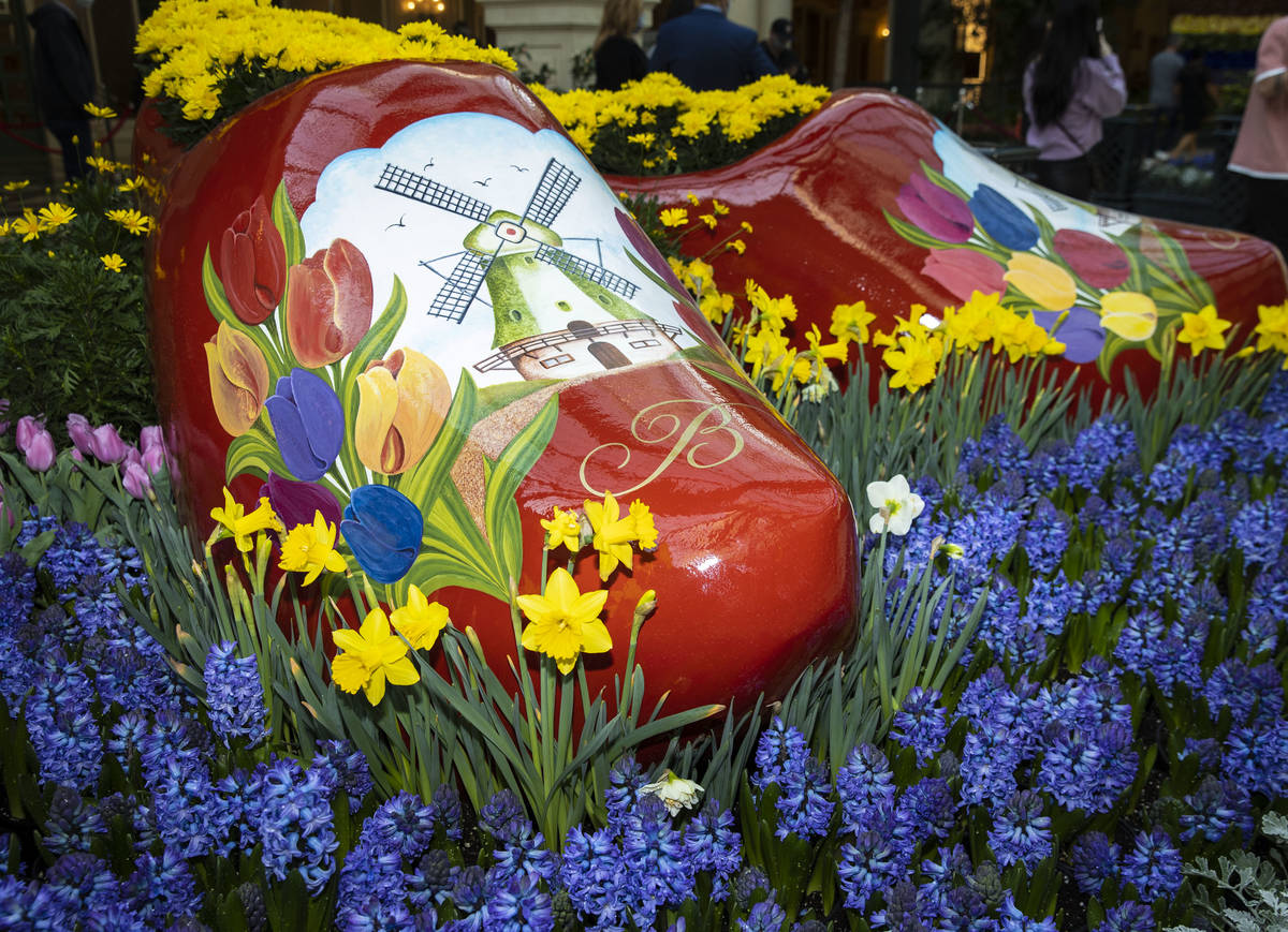 The Strip property’s conservatory has opened its latest botanical display, “Springtime Celebrations Around the World.” The floral creation uses more than 30,000 flowers and plants to represent springtime celebrations in The Netherlands, England, Thailand and the United States.