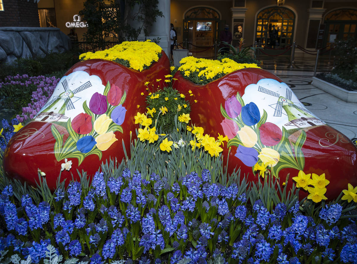 The Bellagio Conservatory, honoring the international celebration of spring, display tulips and flowers at the Bellagio, on Monday, March, 15, 2021, in Las Vegas. The international celebration of spring features renowned spring festivals like The Chelsea Flower Show, The Washington D.C. Cherry Blossom Festival, The Tulip Festival in Holland and Songkran and The Water Festival in Thailand. (Bizuayehu Tesfaye/Las Vegas Review-Journal) @bizutesfaye