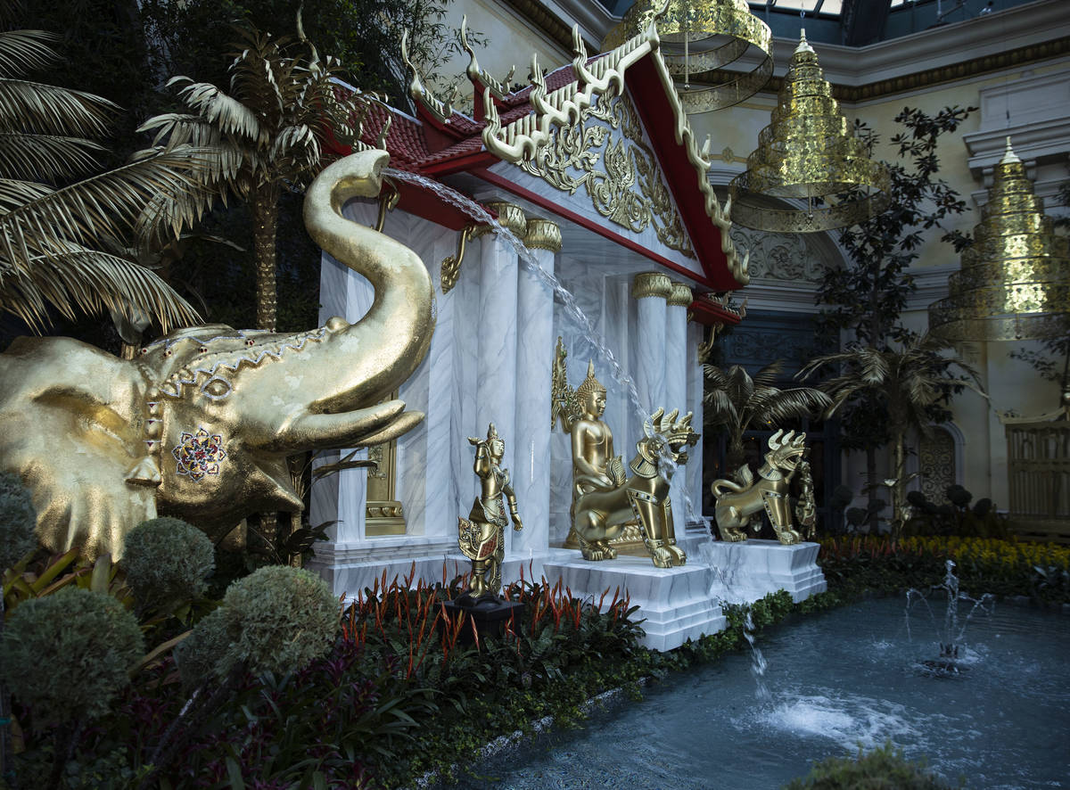 The Bellagio Conservatory, honoring the springtime celebration in Thailand, display Songkran and the Water Festival, at the Bellagio, on Monday, March, 15, 2021, in Las Vegas. (Bizuayehu Tesfaye/Las Vegas Review-Journal) @bizutesfaye