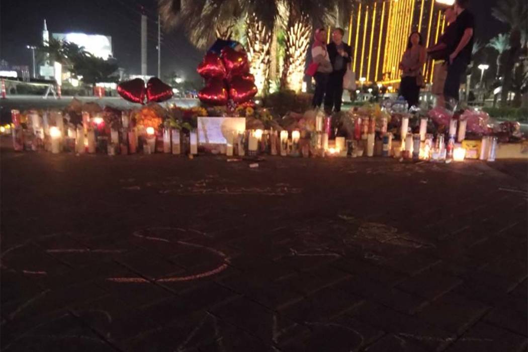On the opposite end of the Strip, the smoky smell of hundreds of candles wafted through the air at a makeshift memorial that was set up across from the World’s Largest Gift Shop.