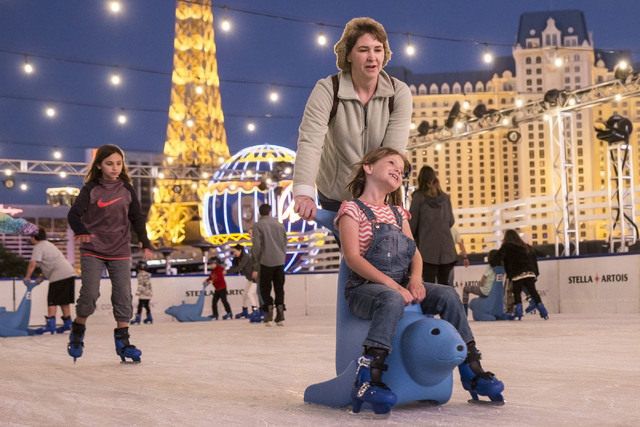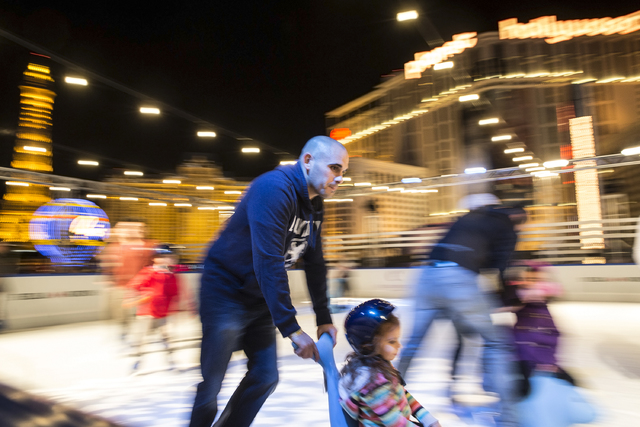 “Coming here is a traditional thing, I bring all types of friends with me,” Stephanie Siclari, 34, of Summerlin said after twirling around on the rink. “It’s something different to do (during the holiday season).”