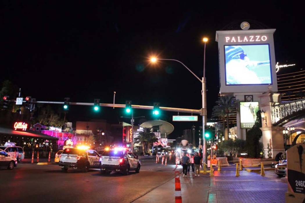 Police blocked two lanes of the northbound boulevard in front of the Palazzo while they investigated.