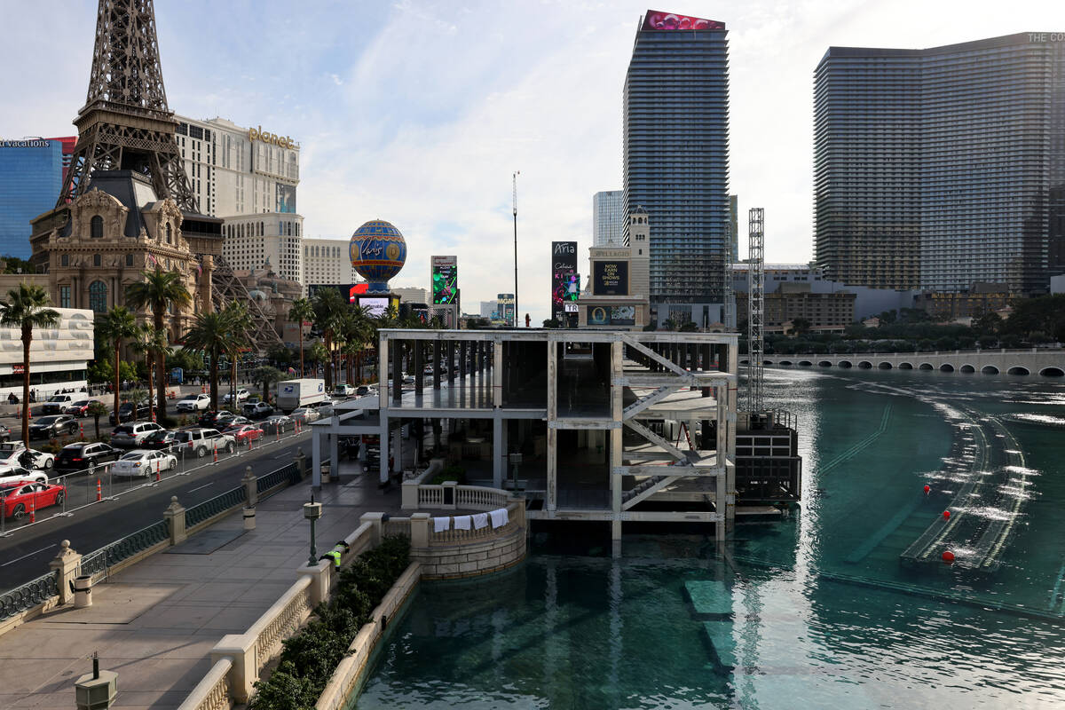 It’s still unclear how long it will take for the three-story grandstands and luxury boxes that block the view of the Bellagio fountains from Las Vegas Boulevard will be dismantled so that visitors can see the fountain shows from the Strip.