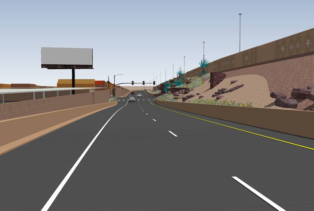 I-15 will run above Starr as a way to reduce traffic noise for nearby homes and businesses, Malfabon said. Plans also call for filling a missing chunk of street along Starr between Las Vegas Boulevard and Dean Martin Drive.
