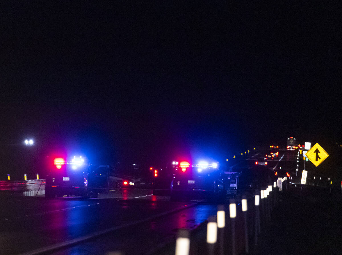 Nevada Highway Patrol officers investigate the scene of a fatal crash on northbound Interstate 15 on Sunday, May 4, 2025, north of Moapa. Two children were found dead at the scene and multiple other people were injured. (Chase Stevens/Las Vegas Review-Journal) @csstevensphoto