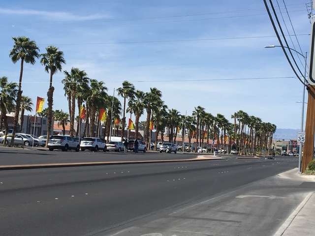 Valley View Boulevard is closed as Las Vegas police are investigating a critical crash at West Desert Inn Road and South Valley View Boulevard involving a rider on a possible moped on Wednesday, April 20, 2016. Bizuayehu Tesfaye/Las Vegas Review-Journal Follow @bizutesfaye