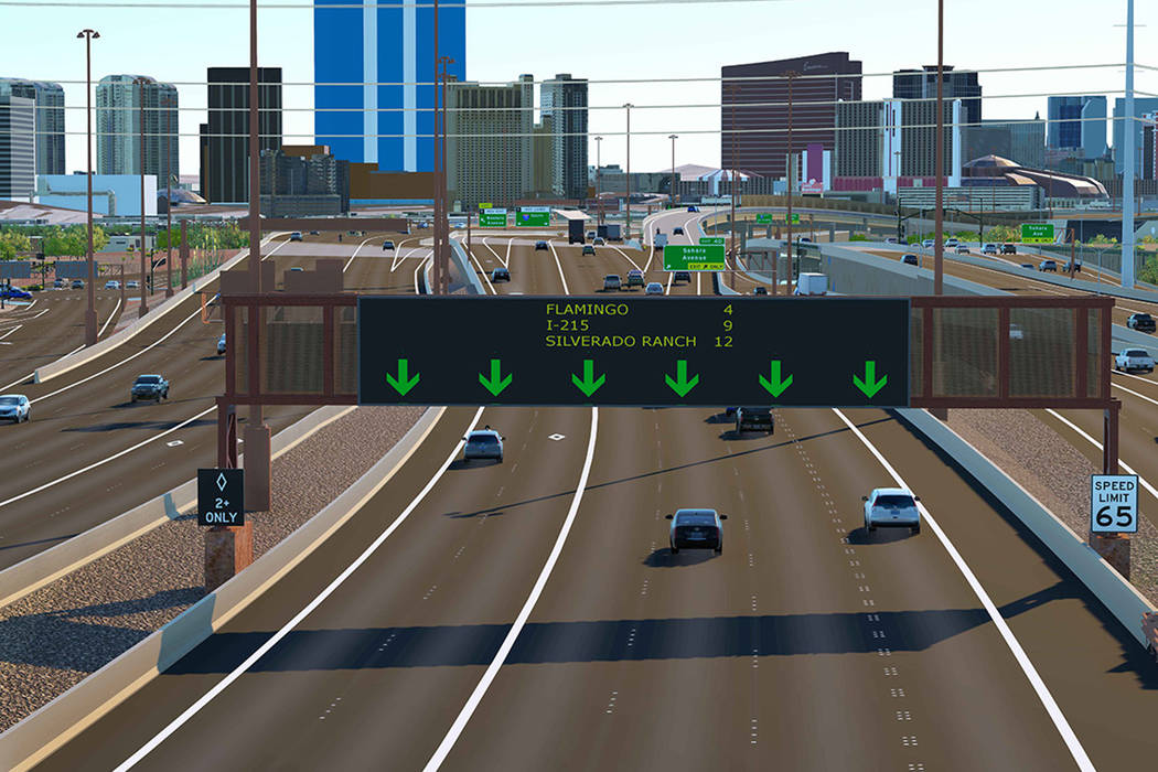 Known as Active Traffic Management signs, the full-color electronic displays are the latest tool deployed by the Nevada Department of Transportation to reduce crashes and congestion for the 300,000 vehicles traveling daily through the state’s busiest freeway interchange.