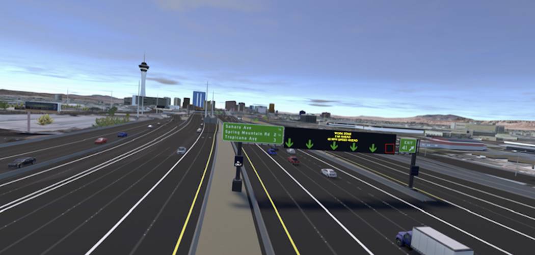 In total, 42 electronic signs will be erected along I-15 and U.S. 95 by the time construction wraps up in July 2019, Illia said. Spaced about a half-mile apart from each other, the displays will relay real-time information about ongoing detours, accidents, lane closures and other traffic hazards.