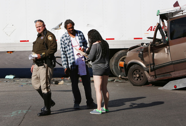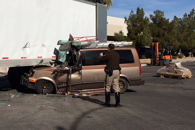 Las Vegas police said the tractor-trailer was eastbound on Post and the van was headed north on Annie Oakley when the truck turned onto Annie Oakley. The truck was already in the intersection when the van hit it, officers said.
