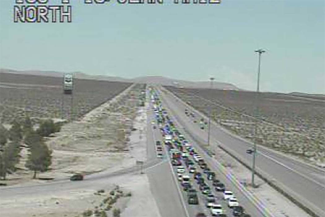 At 1:40 p.m., the Regional Transportation Commission of Nevada reported a 14-mile backup on southbound Interstate 15 near the Nevada-California state line.