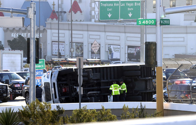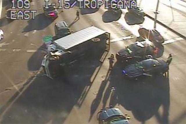 Intersection of I-15 and Tropicana reopens after box truck overturned